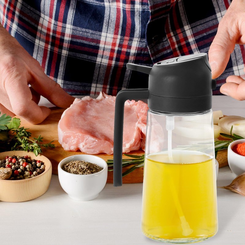 - [Large Mouth & 2 in 1 Design] With a large diameter spout, you can easily add oil without a funnel. With two designs, you can both spray and pour oil to meet your multifaceted needs, practical and reliable.