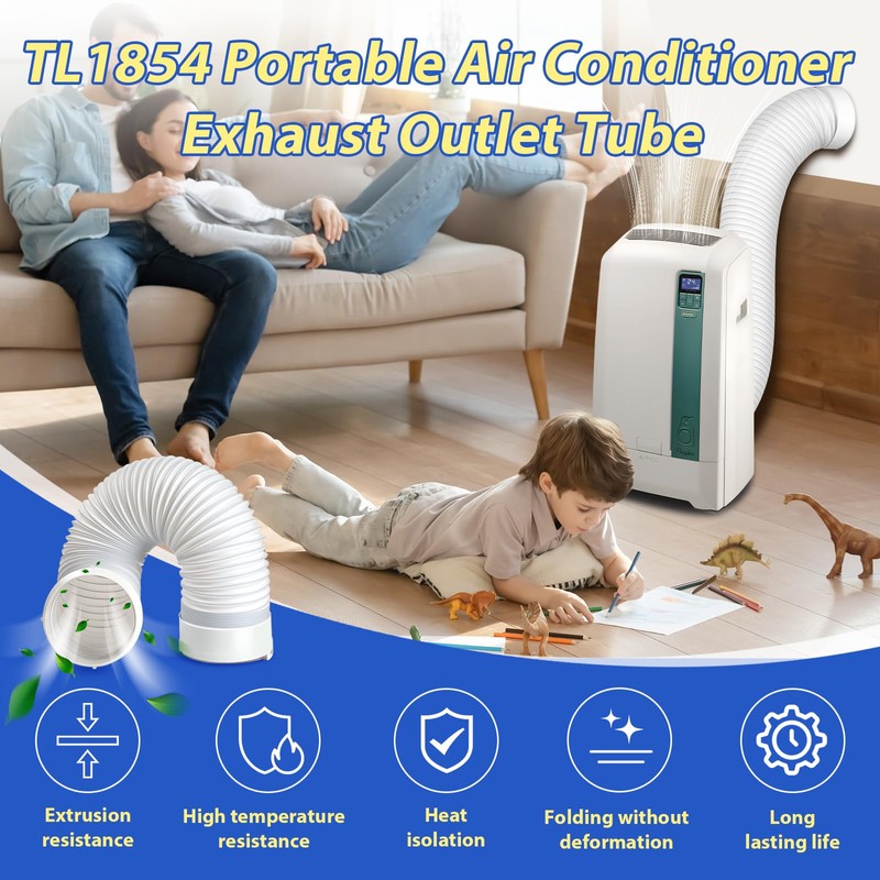 - 【Materials Upgraded】TL1854 exhaust outlet hose tube are made of high-performance materials that can withstand up to 140 ℉. Portable air conditioner hose tube is built with strong metal, which has a long service life and is often folded and will not be easily damaged