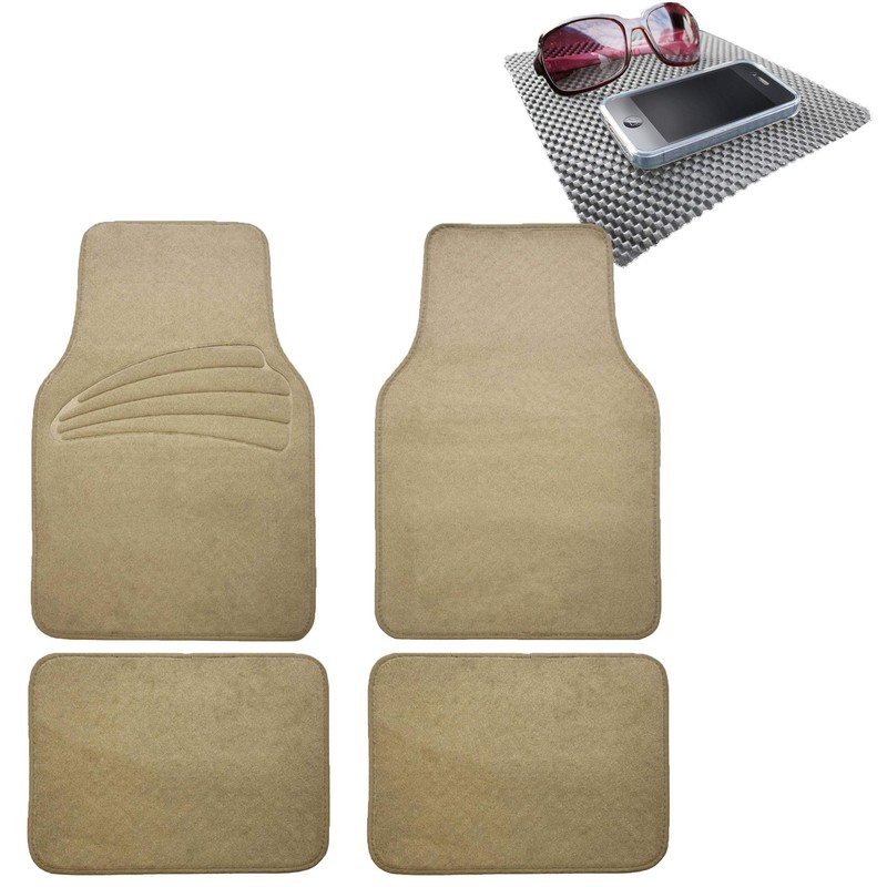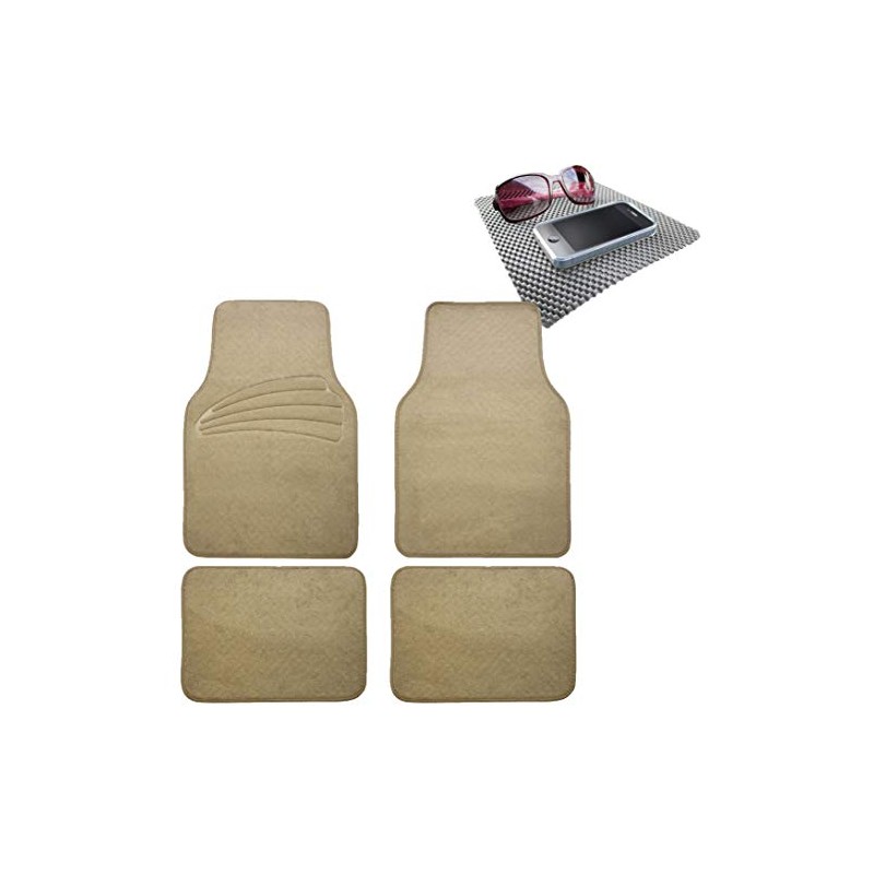 TLH Premium Carpet Car Floor Mats Universal Fit with Heel Pad, Beige Color w/Gray Dash Pad