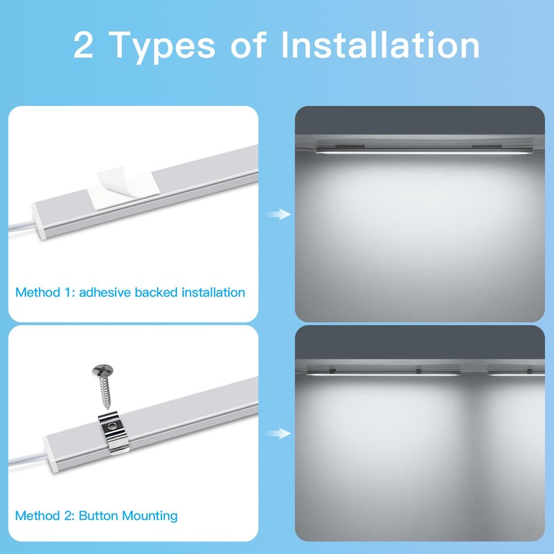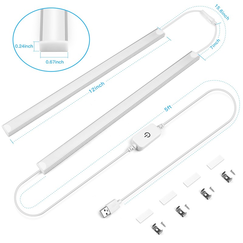 - Flexible splicing design: 5500K white LED strips, 2-3 free combinations/single independent use.1.5m USB power cable compatible with most adapters, plug and play. Low power consumption and energy saving design, perfect fit for kitchen cabinets, display racks and other scenes