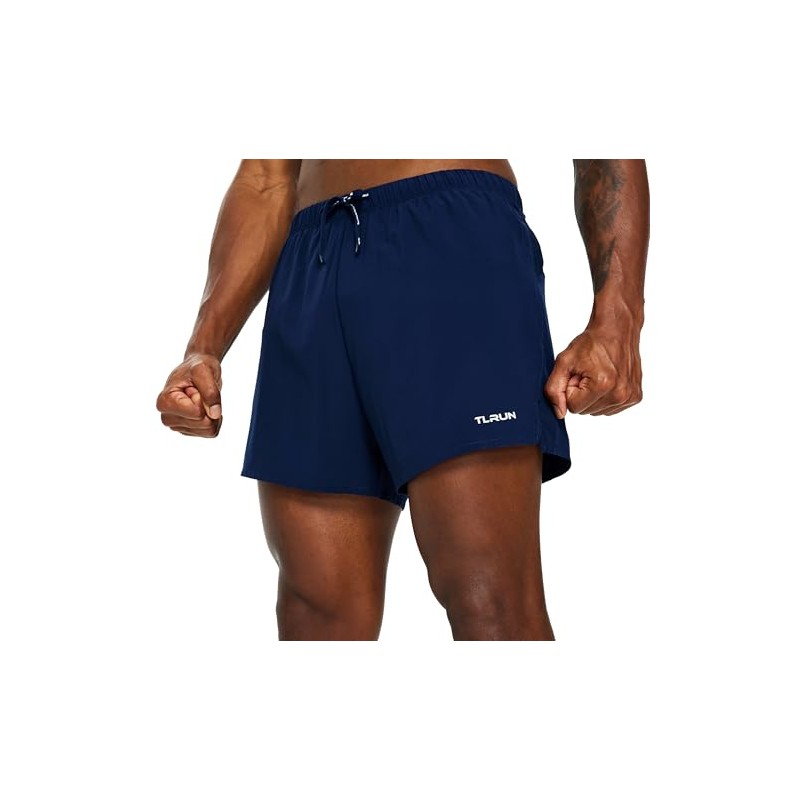 TLRUN Men's Ultra Lightweight 3" Running Shorts Lined Marathon Trail Athletic Shorts(Medium, Navy)