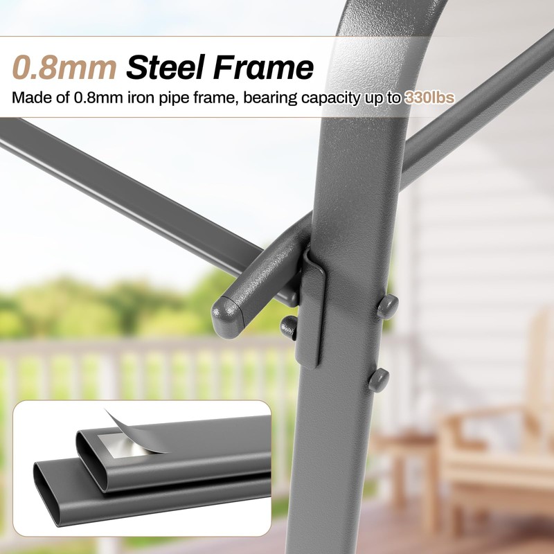 - 330LBS LOAD-BEARING STEEL FRAME: Outdoor furniture chair is made of 8mm heavy-duty steel tubing with a protective coating, extra horizontal rod on the front and back legs, maximum load-bearing capacity: 330 LBS. Stable and firm without shaking