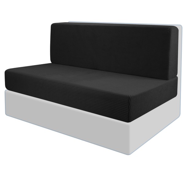 Tlswshsy RV Dinette Cushion Covers-Elastic Camper Cushion Slipcover-Stretchable Loveseat Sofa Furniture Protector for RV Camper Car Bench (1 Backrest Cover & 1 Bench Cover) (Black)