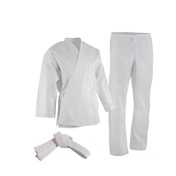 - ULTIMATE USAGE: Uniform set consist of 3 pcs a Jacket, Pant and White Belt. Suitable for beginners or intermediate students to wear at karate training, competition, etc. Reinforced stitching at pressure points for durability. Professional and lightweight, breathable and quick dry. Extra strength and room to move for a perfect fit.