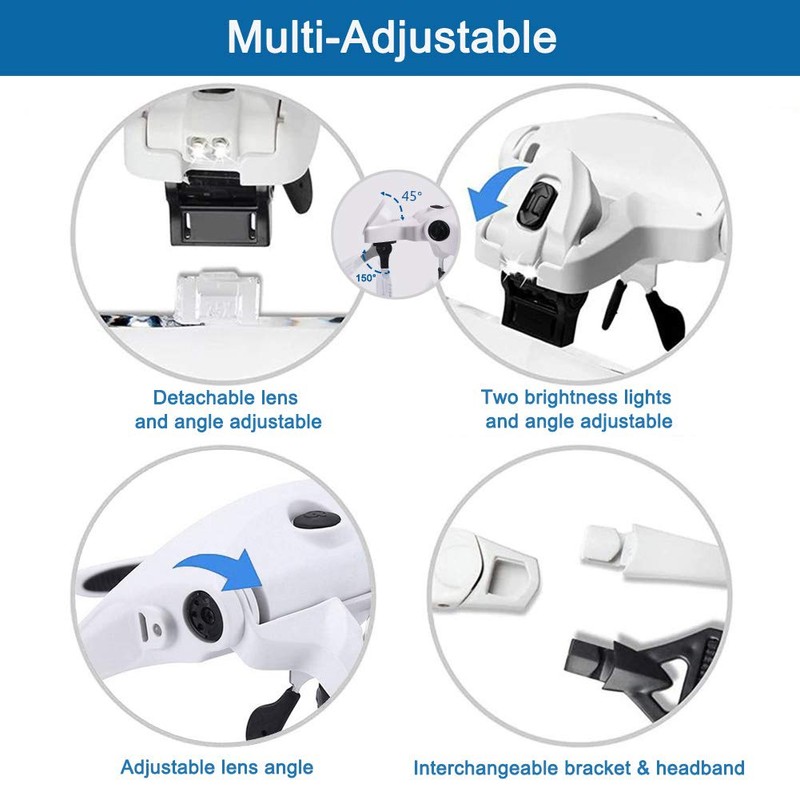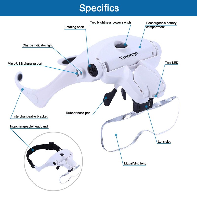 Tmango TMANGO Magnifying Glasses with Light for Close Work, Rechargeable and Hands Free Headband Magnifier, Optivisor for Jewelers, Eyelash, Watch Repair or Cross Stitch