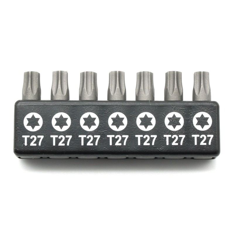 - INCLUDES: A 7-pack of 1" T27 (T-27) Torx bits with a convenient plastic holder that displays the head size and pattern.