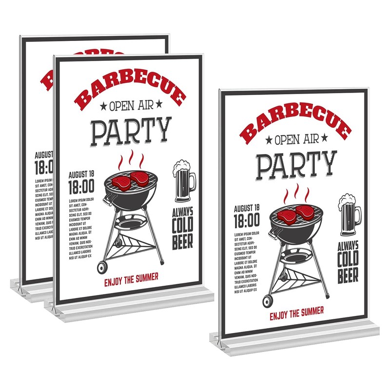 - WIDE APPLICATION: The package includes 3 pack Acrylic Display Stand A5, suitable for various settings such as home, office, restaurant, hotel, trade shows, and more. Ideal for displaying ads, menus, flyers, and other materials to meet diverse display needs | acrylic sign stand acrylic tabletop sign holders clear acrylic sign holder menu display holder menu double-side stand up holder 3pcs acrylic sign holder perspex sign holders landscape a5 t-shape clear plastic display