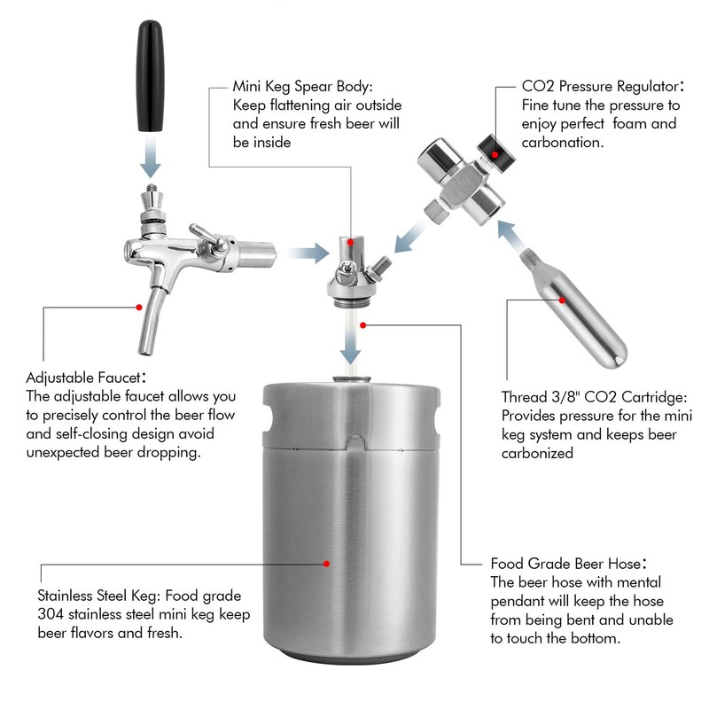 - KEEP YOUR BEER FRESH: Mini dispenser system can maintain vacuum pressure in the keg and keep beer fresh for few months, also the food grade stainless steel material keeps beer flavor.