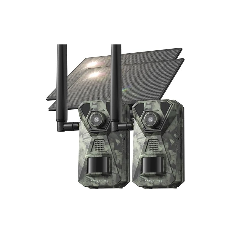 TMEZON 2 Pack 4K Trail Camera, 48MP Game Camera with Solar Panel, WiFi Bluetooth