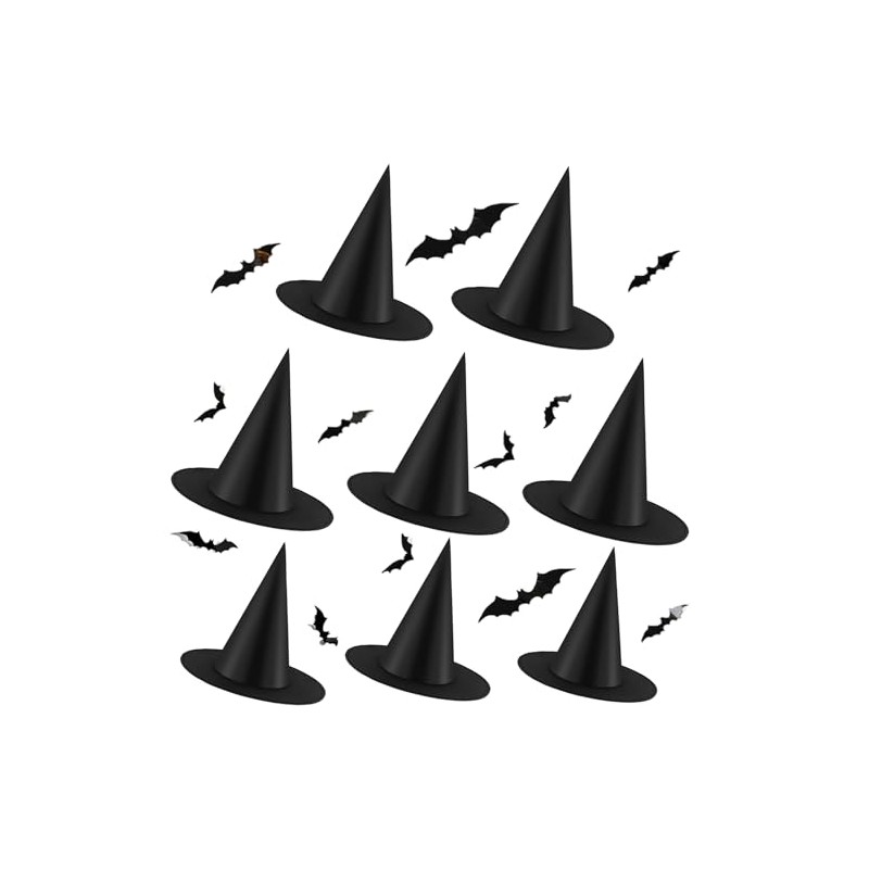 - 4.Package includes: 8 pack black witch hats and 12pcs 3D DIY bats.Enough quality for your party to share with friends and family members.With 3D bats, you can DIY it to your hat or other places to add your own design Halloween scenes.