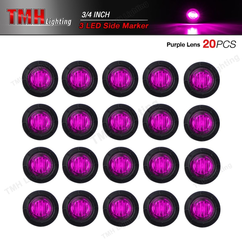 - 20 Pcs of 3/4 Mini Round Purple Side Marker Light 3LED Built-in 60 Lumen with grommets, long life span,super power bulb,brighter and light faster.