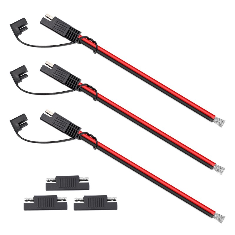 • ✅SAE Cable: 3 Pcs of 1 Foot(30cm.) long, 10 AWG, 40 Amp, with universal SAE connectors. Package includes covers and polarity reverse adapters; No worries about reversing wire.