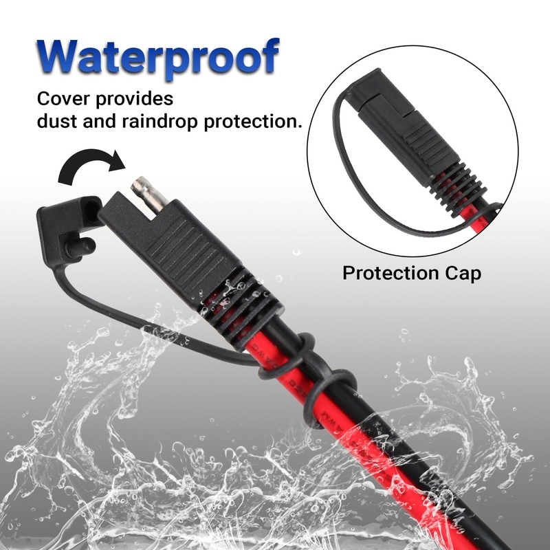 • ✅Wide Application: Use to extend and maintain most batteries and chargers with SAE quick release connectors. Widely used in a variety of batteries, solar panels, motorcycles, lawn mowers, ATV, RV, boat, trolling motors, tractors and other equipment that requires SAE plugs.