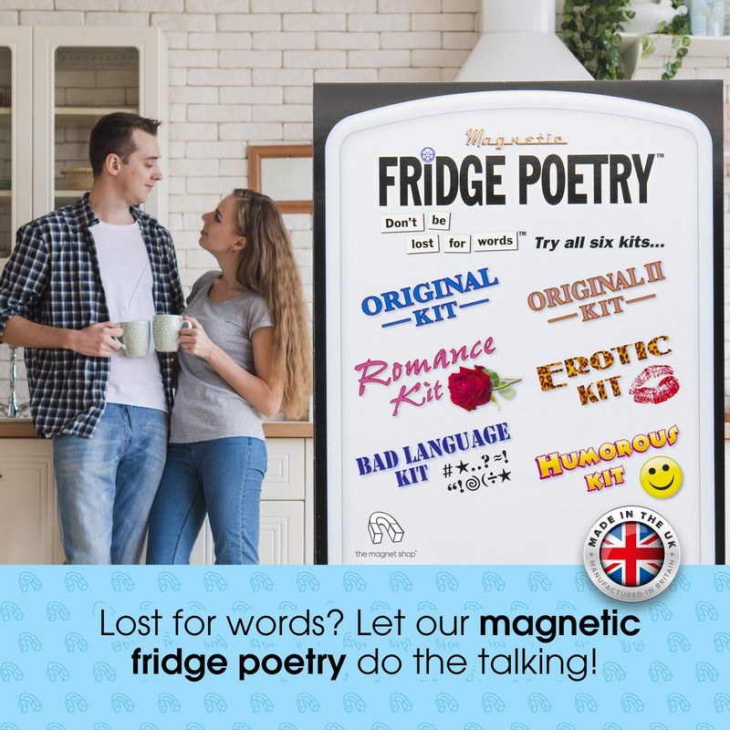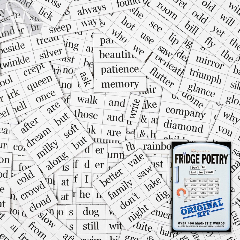 Fridge poetry Original Kit with over 400 magnetic words. A fun magnetic gift for him or her - ideal for anniversary presents, valentine's, birthdays or even Christmas presents!