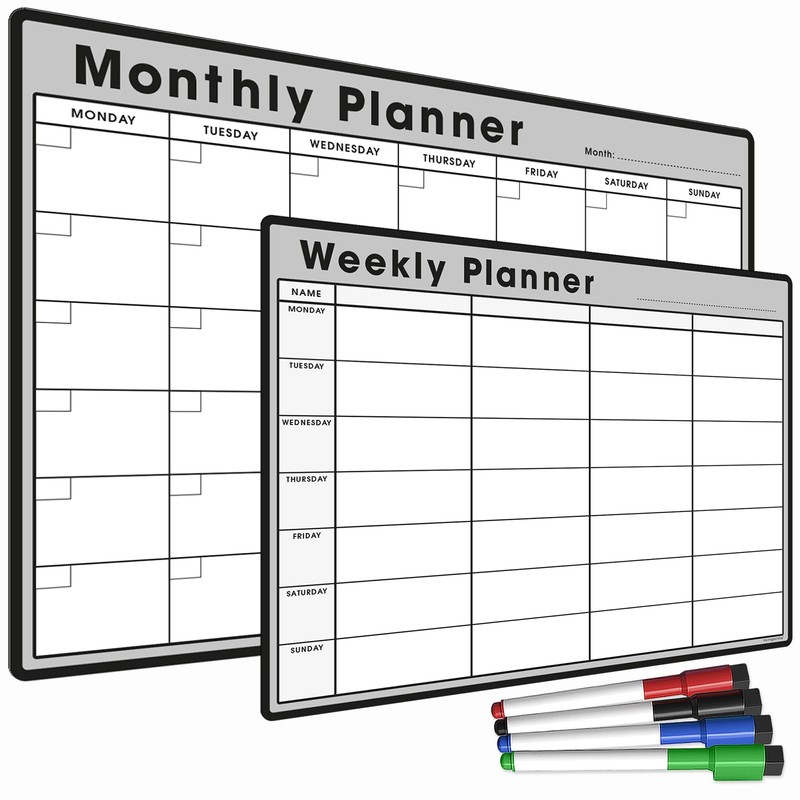 TMS Magnetic Fridge Planner Set | A4 Weekly & A3 Monthly Calendars for Memos & to-Do Lists | Meal Planner Bundle with 4 Dry Erase Pens