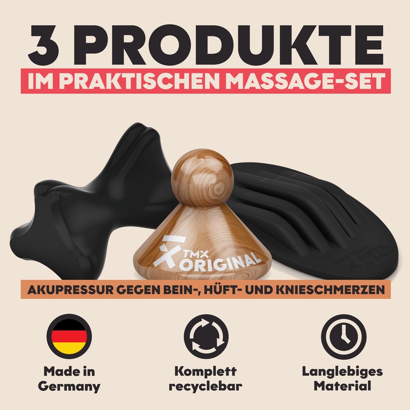 TMX® Bein-Hüfte-Knie-Bundle | Massage-Set | Akupressur gegen muskuläre Beinschmerzen | Schmerzpunktmassage | Triggerpunktdrücker | Triggerpoint-Massage | 3 Trigger-Tools in einem Set