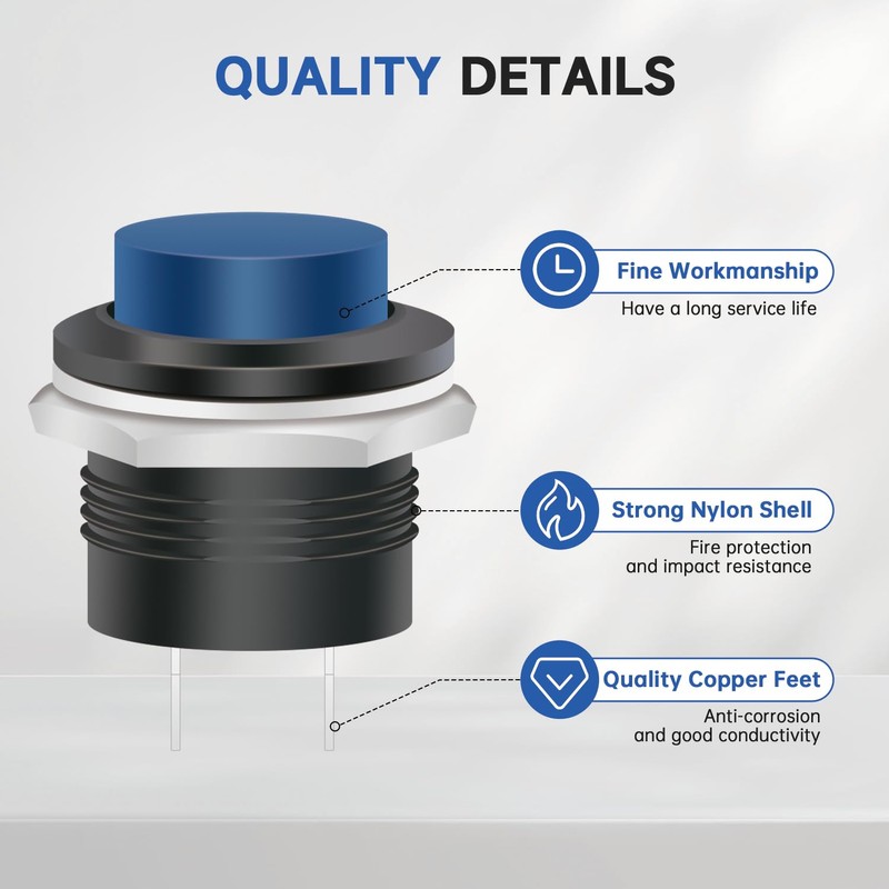 - Stable material: The momentary switch is made of sturdy nylon and quality copper, reliable, impact-resistant, long in service life and easy to clean and maintain