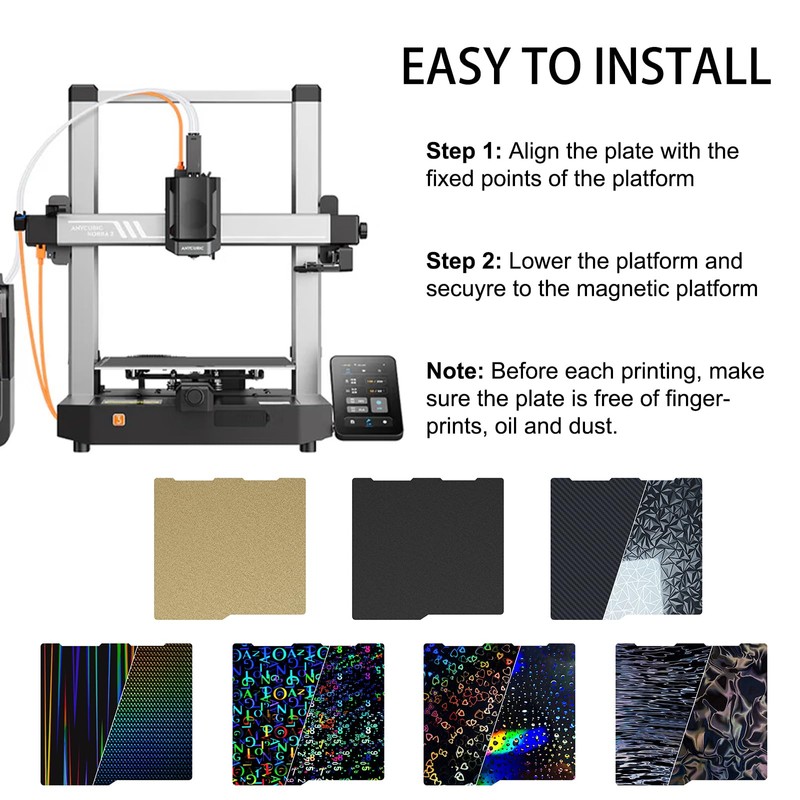 Easy to Remove Models: High-quality spring steel material, after the printing is completed, you only need to take off the spring steel after cooling down and gently bend it to remove the model, without using a shovel, which is more convenient and prolongs the service life of the printing platform.