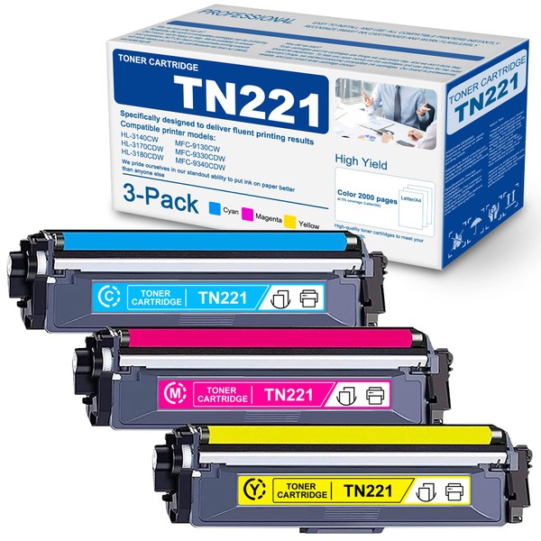 - Included : (3 Pack, 1Cyan+1Magenta+Yellow) High Yield TN221 toner cartridge.