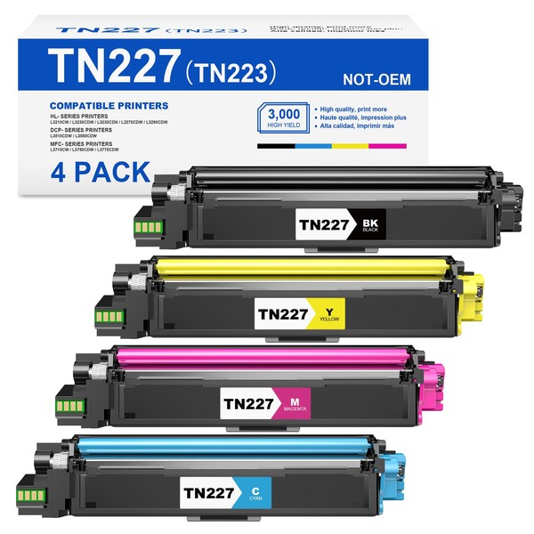 - Package Contents: 1 x Black TN227 TN-227BK Toner, 1 x Cyan TN227 TN-227C Toner, 1 x Magenta TN227 TN-227M Toner, 1 x Yellow TN227 TN-227Y Toner (total 4 pack tn227 high yield toner cartridge 4 pack )