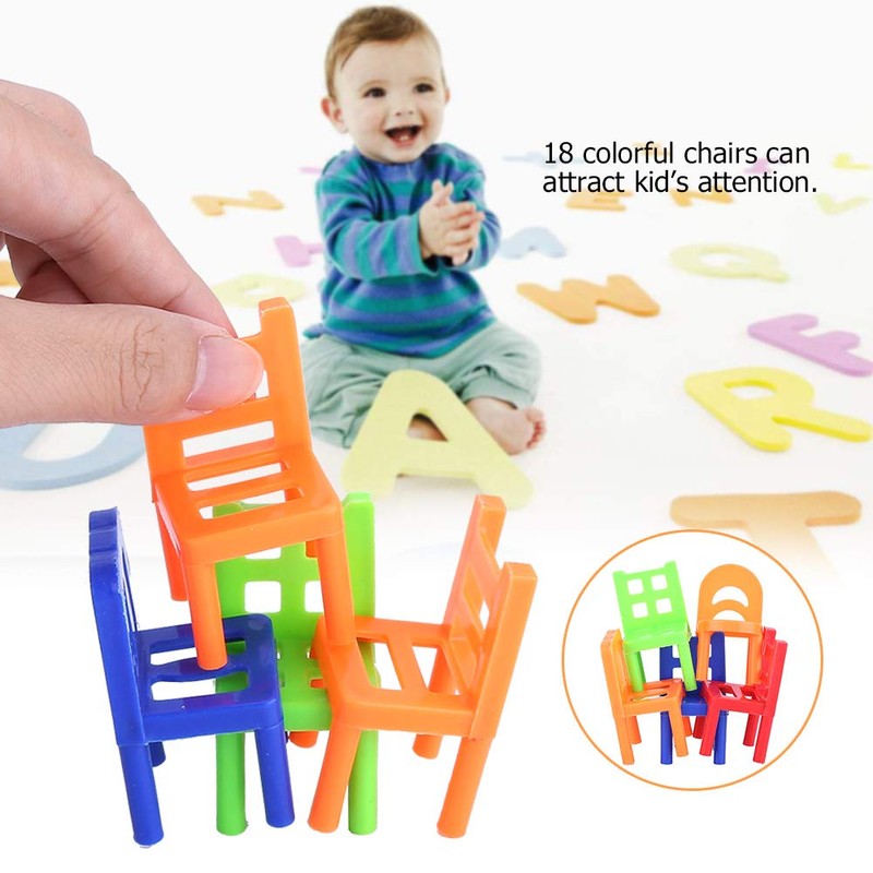 Tnfeeon 18 Pieces Balancing Toy Plastic Chairs Multicoloured Mini Stack Intelligence Multiplayer Balance Game Kids Play Game Learning Toy Play Set for Unisex Children Boys