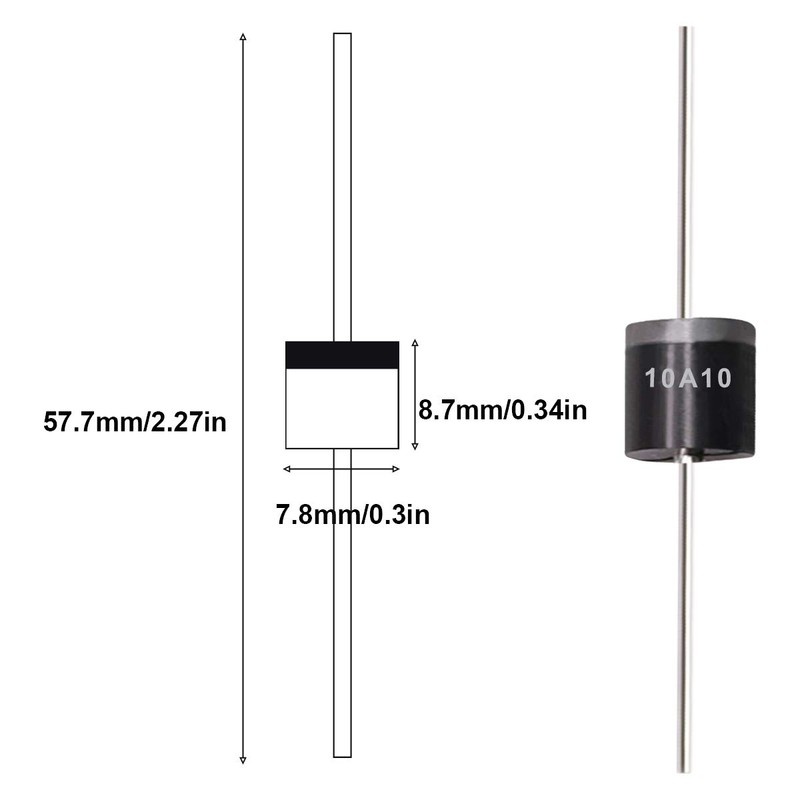 • P/N: 10A10 ; Forward Current : 10 A ; Maxixum Repetitive Peak Reverse Voltage : 1000 V.