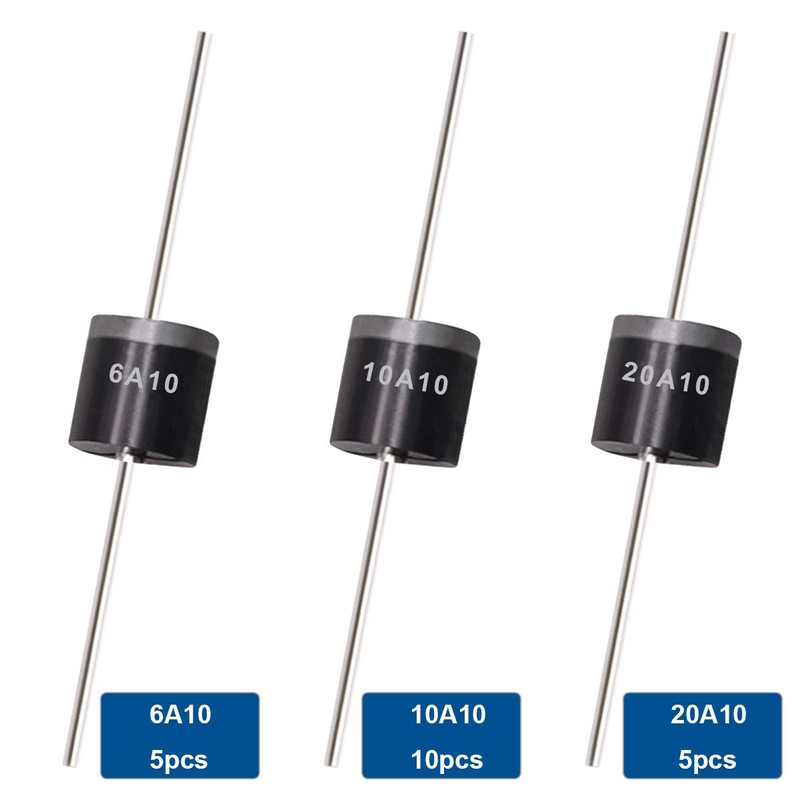 Tnisesm 20 Pcs 6A10, 10A10, 20A10 Rectifier Diode Kit 1000 Volt Electronic Si...