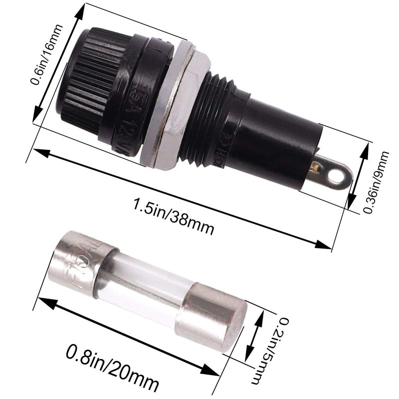 - 5x20mm fuse holder, with screw cap and soldering terminals.