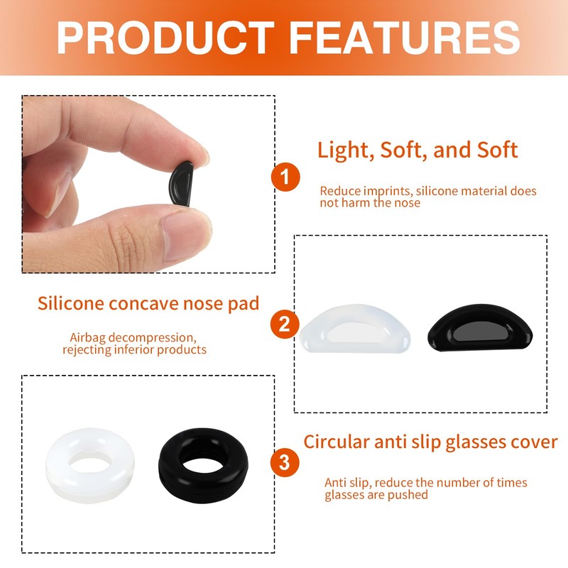 - Non Slip Nose Pads Offer Secure Hold All Day: These eyeglass nose pads are designed with an anti-slip silicone texture that keeps your glasses in place during daily activities, offering extra support for both eyeglasses and sunglasses without slipping
