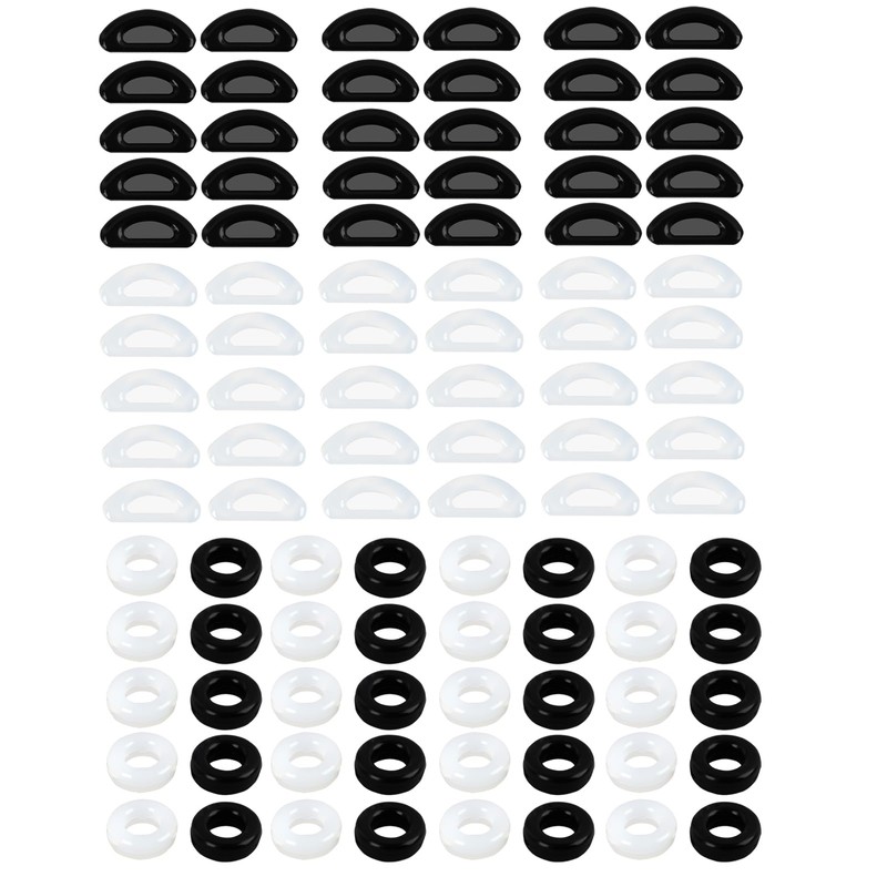 - Complete Set with 100 Pieces in 2 Colors: This kit includes 100 total pieces— 30 pairs of anti-slip eyeglasses nose pads and 20 pairs of silicone temple tips in white and black, offering variety and quantity to support your eyewear for long-term use