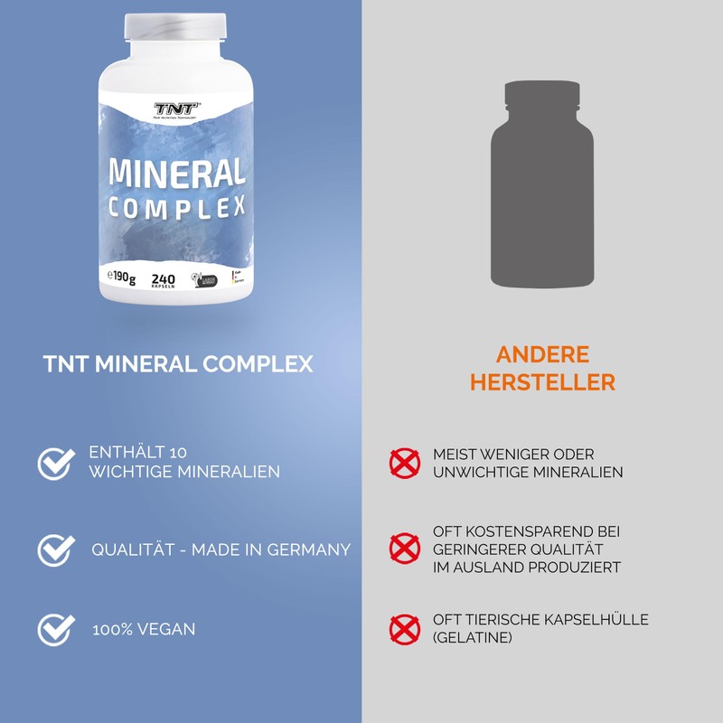 TNT Mineral Complex (240 Capsules) • Mineral Complex High Dose • 10 Minerals & Trace Elements as Electrolytes • Multimineral Complex Laboratory Tested • Made in Germany • 100% Vegan