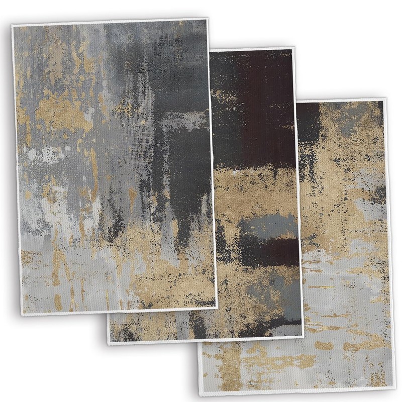 TNUW Grey Brown Black Abstract Art Painting Kitchen Towels 16X24In Set of 3, Abstract Art Hand Towels for Kitchen Bathroom, Oil Painting Decorative Hand Dish Cloths for Modern Kitchen Bathroom Decor