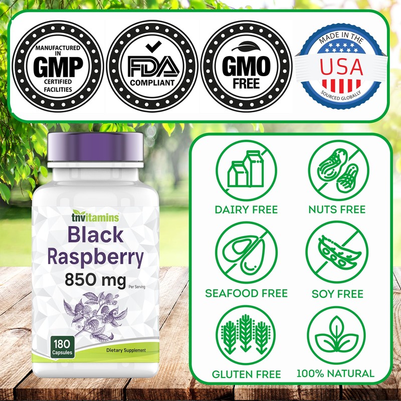 tnvitamins Black Raspberry Capsules 850mg Per Serving - 180 Capsules - 3 Month Supply!
