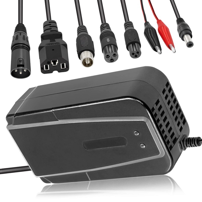 - 5 features of charger:-1.Adopt advanced chip, intelligent protection, more secure;-2.Intelligent and efficient lithium battery charger; -3.Built-in cooling fan, effectively avoid the phenomenon of charging and heating;- 4.The shell is made of high quality flame retardant ABS material; -5.High voltage timing charging, intelligent IC controls the highest voltage charging time, effectively avoiding damage to the battery