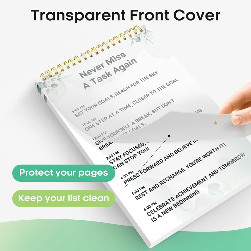 - Stylish and Practical : This to do list planner features a transparent PP cover to protect the inner pages from dirt and wear.The back cover is also made of thick paperboard, providing a stable surface for writing.Each notepad contains 52 pages of high-quality, 100gsm paper, which is thick and non-bleeding for a smooth writing experience.