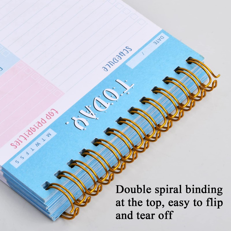 - 【Double Coil Turning Design】With the spiral coil on top of the desk notepad, you can turn pages easily. It is also convenient for you to tear off the used note sheet and use the new planning sheet.