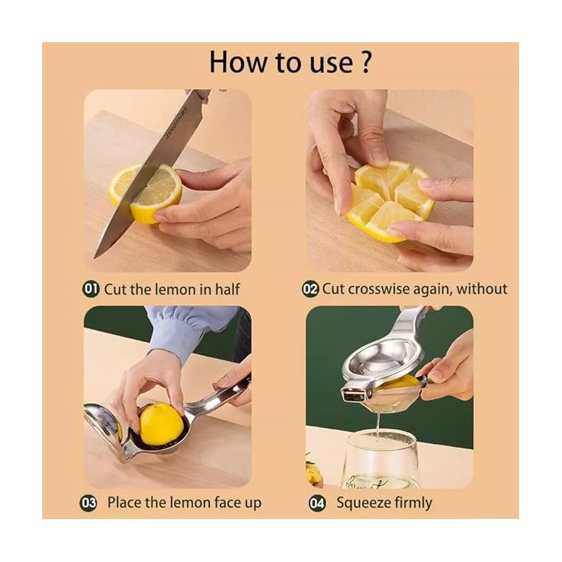 Alta calidad: hecho de acero inoxidable de grado alimenticio premium, no se oxida ni se deforma. El exprimidor de limón de diseño ergonómico te da un mango cómodo.