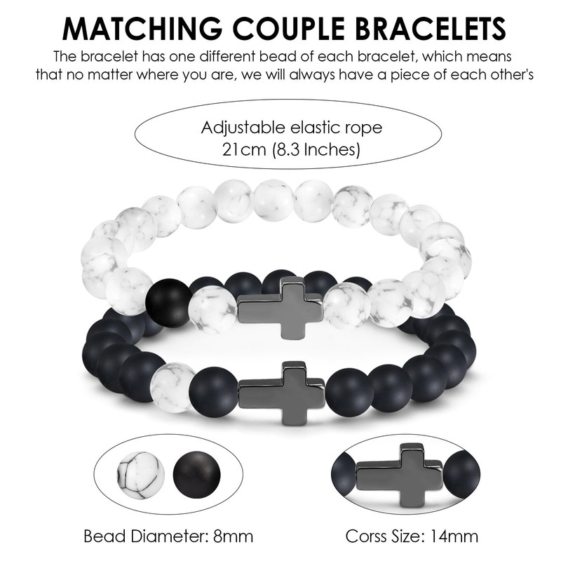 - HIGH QUALITY MATERIAL: This couple bracelet is made of natural stone & premium cross charm & strong elastic cord. It's lightweight and comfortable to wear, not easily deformed or faded. This best valentines day anniversary gifts for him and her is fashionable and beautiful, adding personal charm.