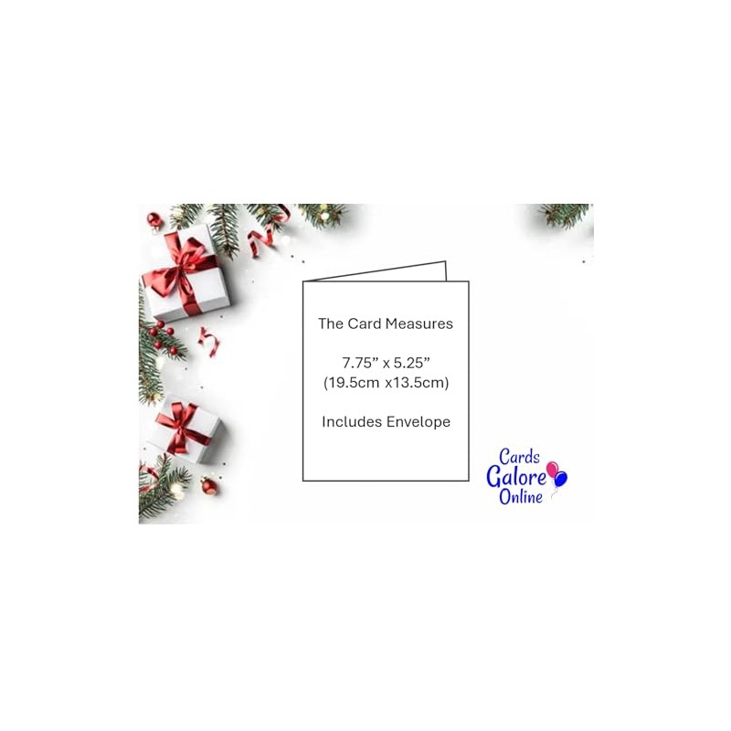 To The Cat Christmas Card With Envelope - Baubles, Stocking and Snowflakes with Silver Foil Approximate Size: 7.25" x 5.5" (18.5cm x 14cm) On the front the card reads: To The Cat at Christmas With Lots of Love & inside is printed with the same design and reads: Have a Purrfect Christmas!