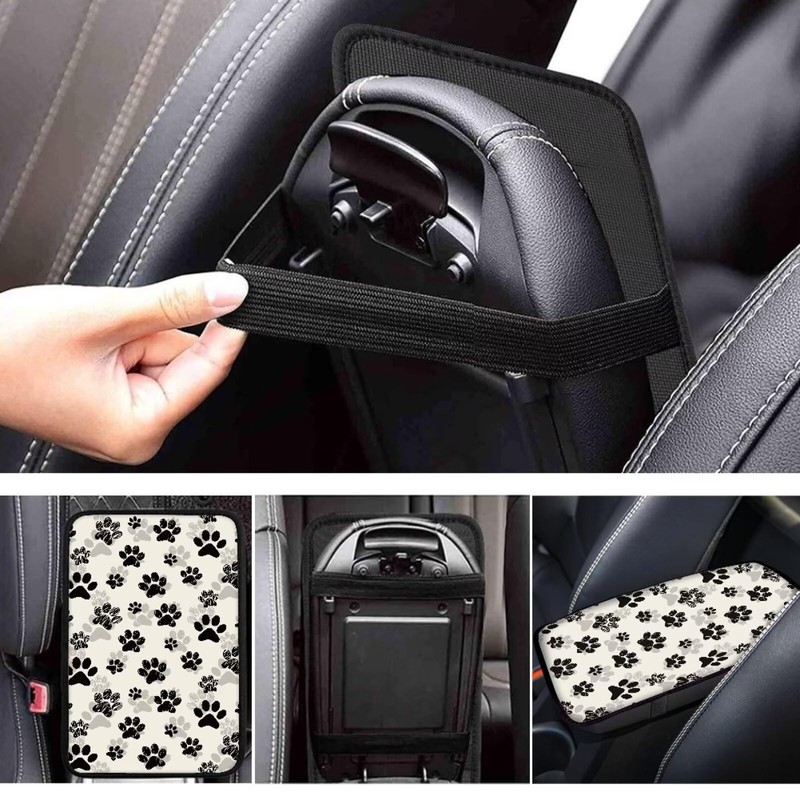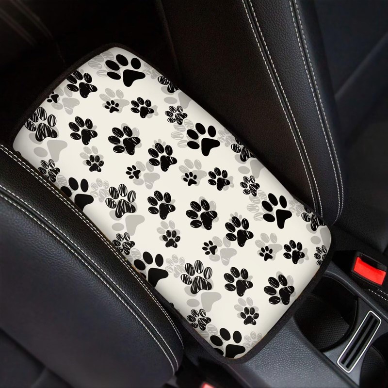 TOADDMOS Decorative Auto Center Console Cover Pad Cushion Black Dog Paw Print Car Armrest Seat Box Cover Protector,Car Decor Accessories