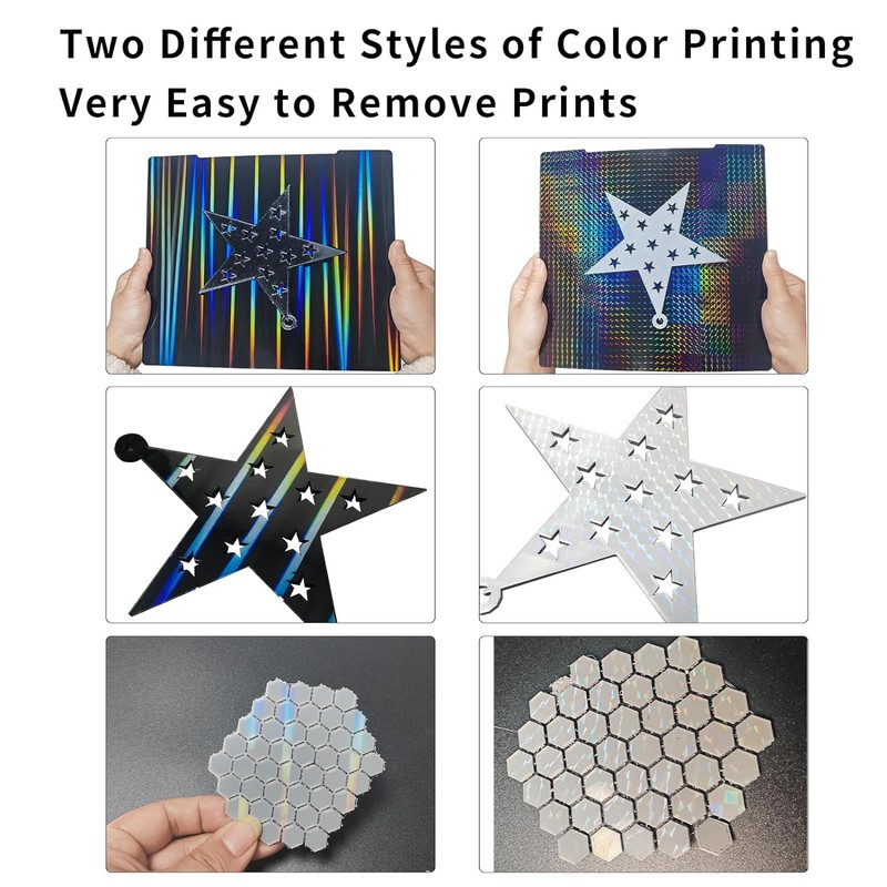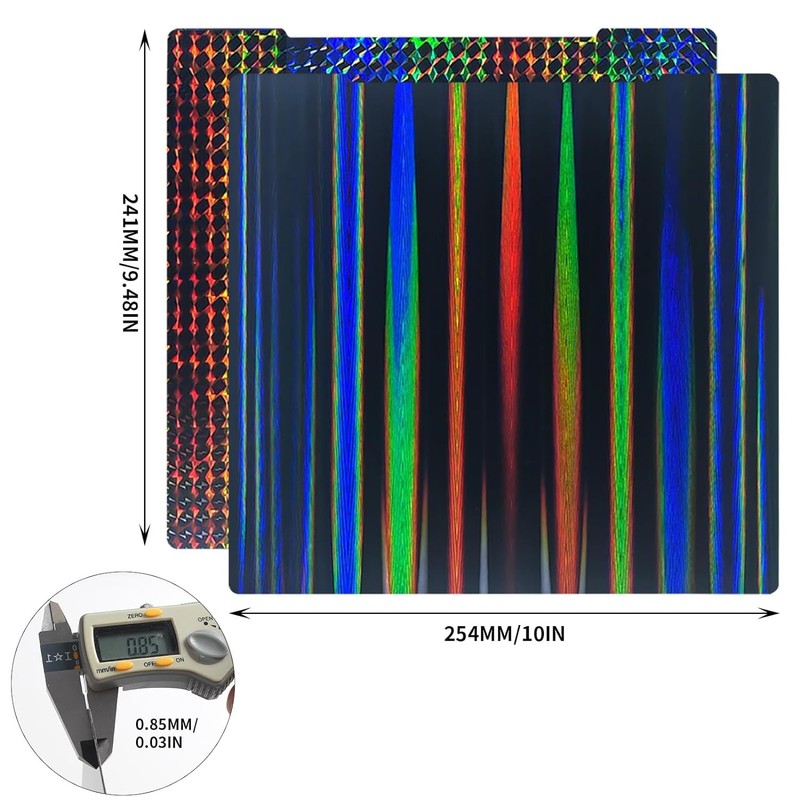 - Newly Upgraded HIH Hologram Building Plate: Beam Pattern on one side and Phantom Pattern on the other side. Under the light from different angles, the bottom of the prints will show rich and vivid colors, bringing fantastic visual effects, adding more interesting inspirations to your creations and immersing you in the fun of 3D printing item.