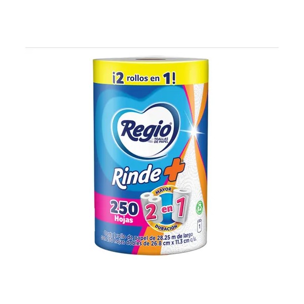 Toallas De Papel Regio Rinde + 1 Rollo Con 250 Hojas Dobles