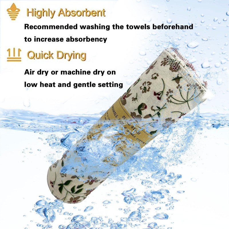 - Se pueden utilizar como toallas de cocina, servilletas reutilizables, toallas de mano, paños de limpieza, toallitas de mesa, papel higiénico sin desgarros, toallas de cocina para secar platos, paños de cocina, envoltorios de alimentos o cualquier producto de limpieza doméstico.