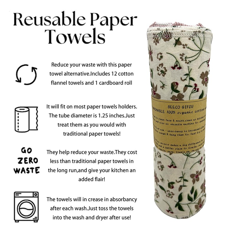 - A diferencia de las toallas de papel desechables normales, nuestros rollos de toallas de papel se pueden lavar y reutilizar más de 500 veces. Estas toallas de cocina vienen en rollos de 20 hojas cada una, miden 10 x 10 pulgadas, y las piezas de tela de toalla de papel están hechas de franela de algodón orgánico 100% sin pelusa que se adhiere naturalmente a tu propio soporte de toalla de papel.
