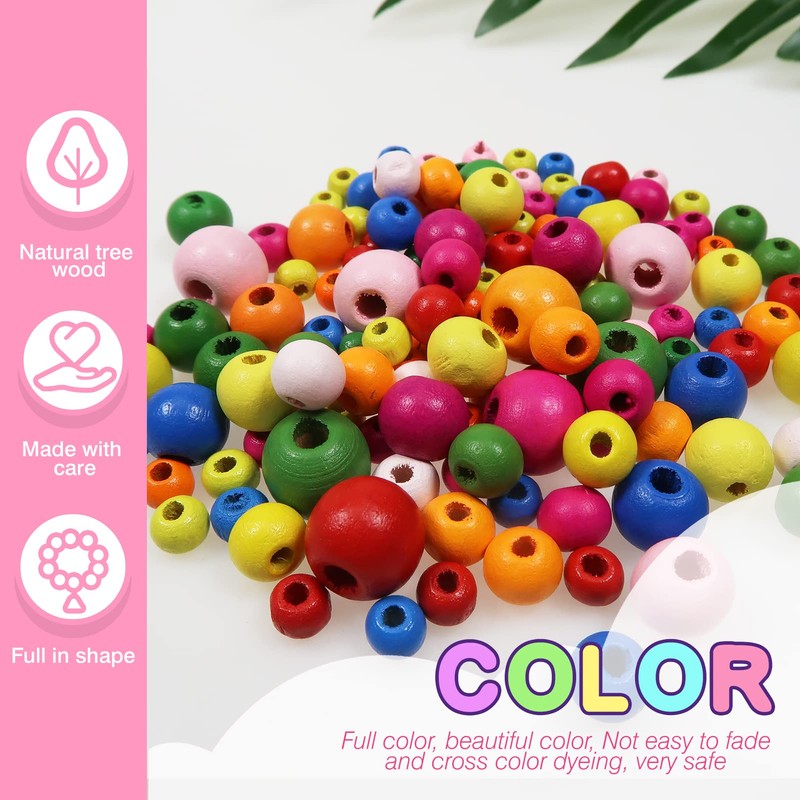 - Easy to use: the inner hole of these wooden beads is large enough to be strung, very suitable for threading, whether you are beginners or craft lovers, this set of wooden beads is perfect for working