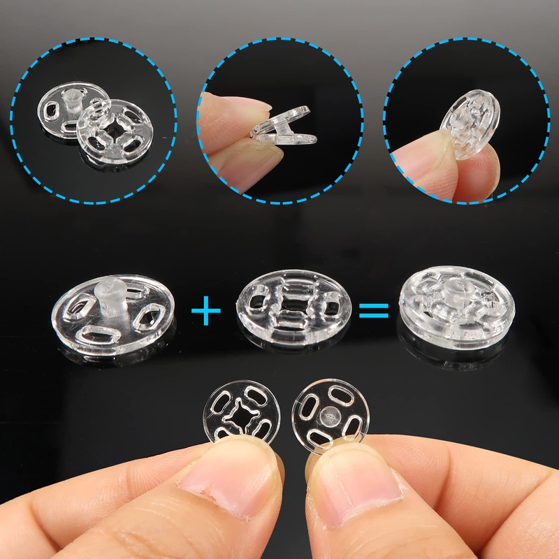 - Material: made of quality plastic, these clear round snaps are reliable to use, hard to break, the design in bright color allows the button to be invisible, will not affect the style of your daily look