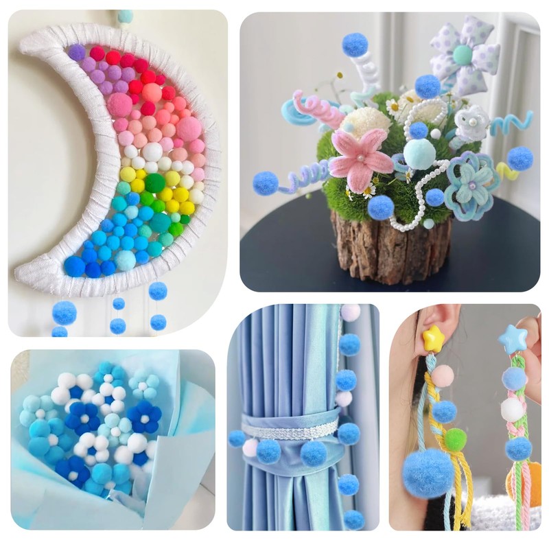 - Material: These craft pompoms are made of polypropylene fiber, not easy to fade, comfortable and light weight, can meet your needs for DIY craft