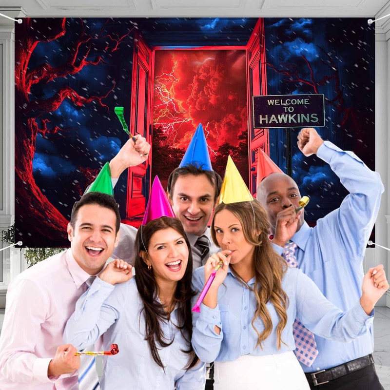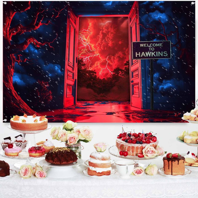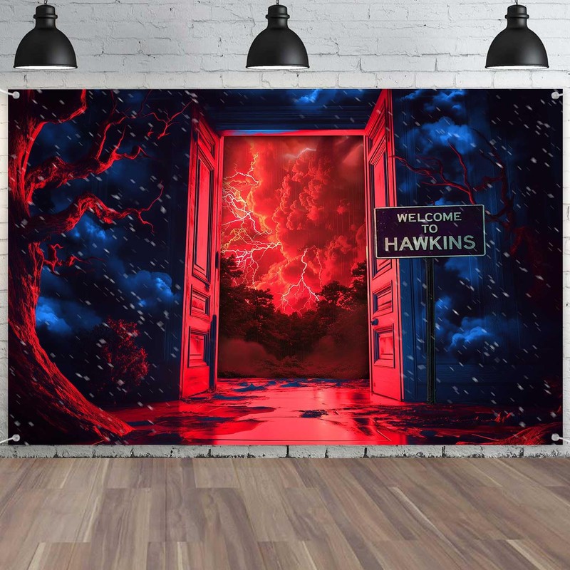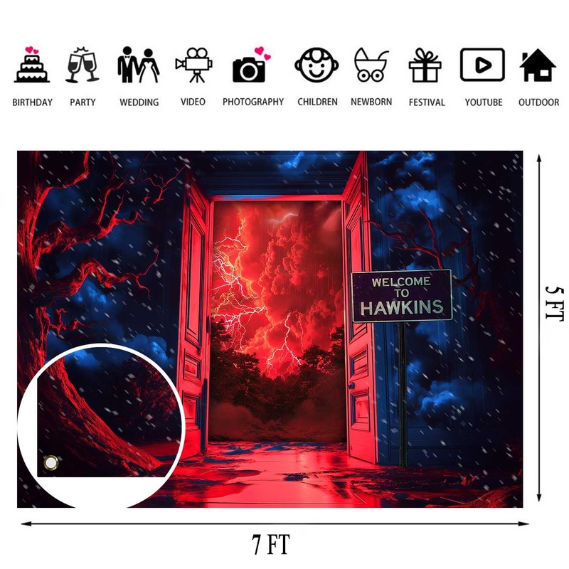 TOAOFY 7x5ft Stranger Photo Background Violent Lightning Forest Red Sky Backdrop Indoor Door Backdrop Birthday Party Studio Prop Photo Background Photography Props TAYTKDJ090