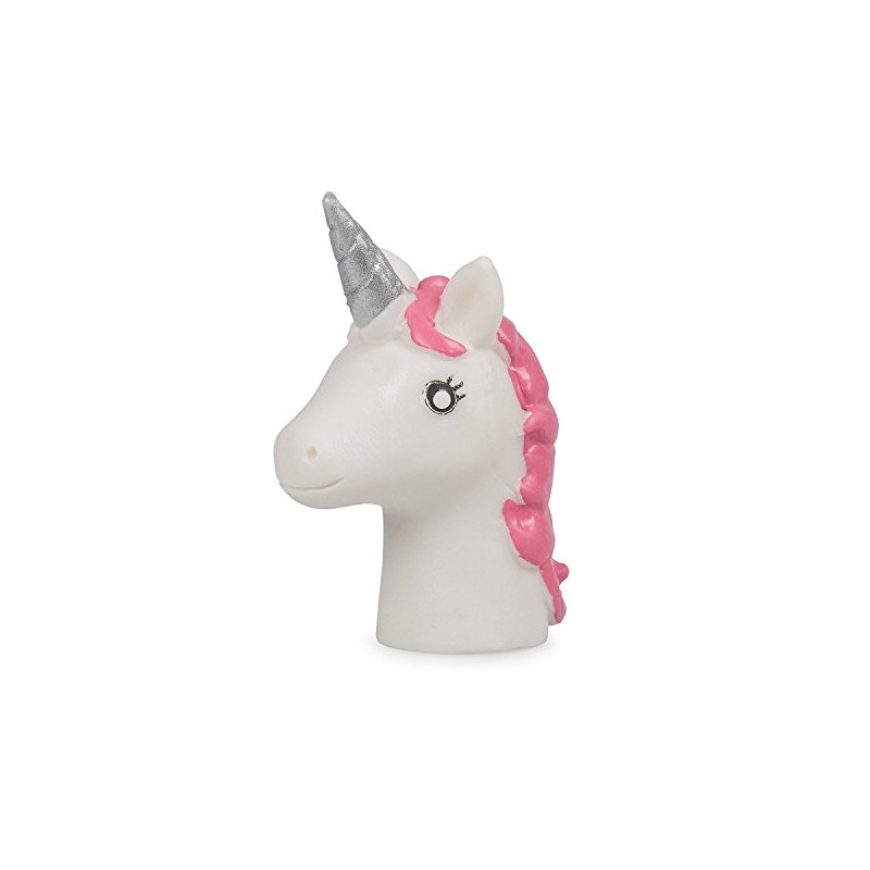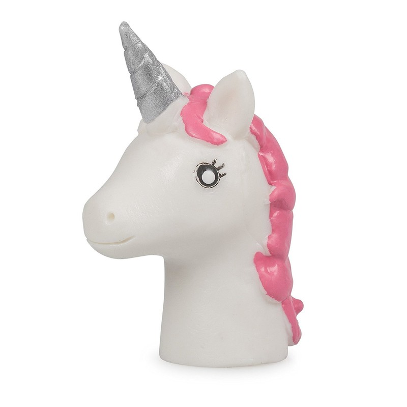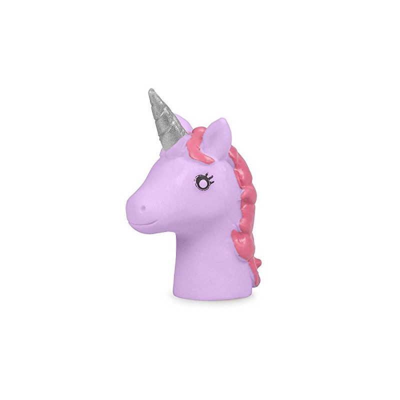- Pack of three finger puppets shaped like colourful unicorn heads.
