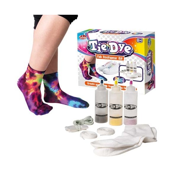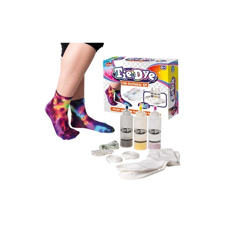 - An engaging and creative Tie Dye Footwear activity set to create a super colourful pair of socks and set of shoe laces. Express your personal style and personality with this crafty set.